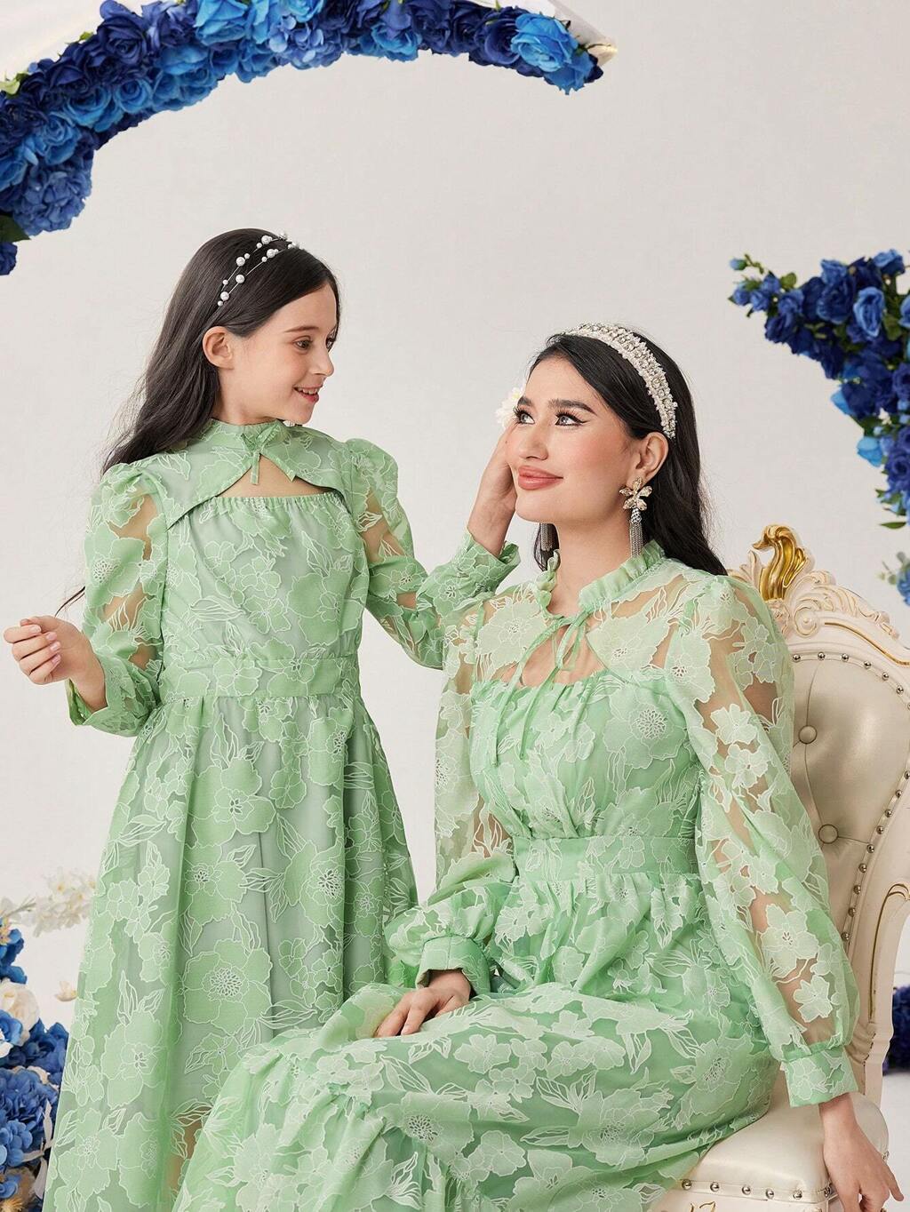 Women's Tie-Neck Jacquard Dress Long Evening Dresses Fall Cloth For Women