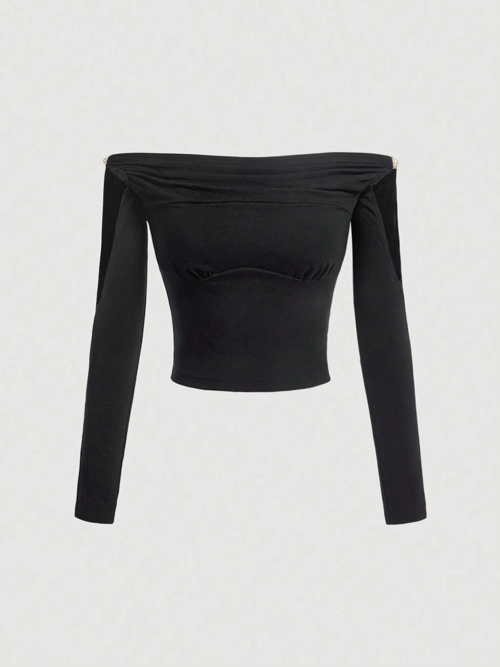 Solid Cut Out Crop Tee Long Sleeve Women Tops