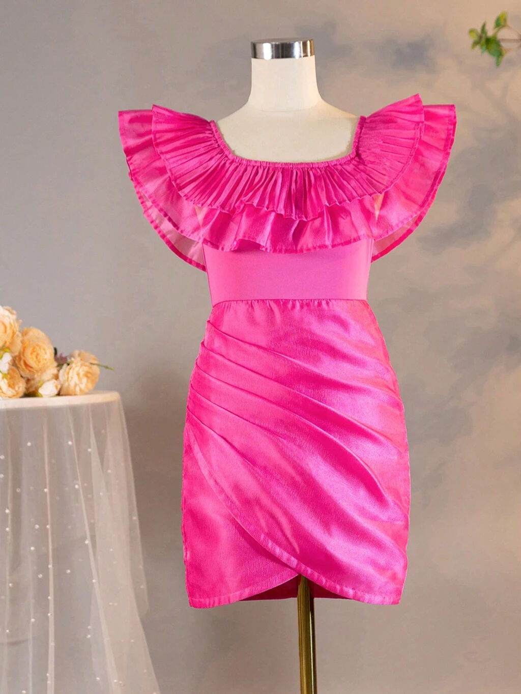 Tween Girls' Double-Layer Ruffle Detail Side Pleated Wrap Dress