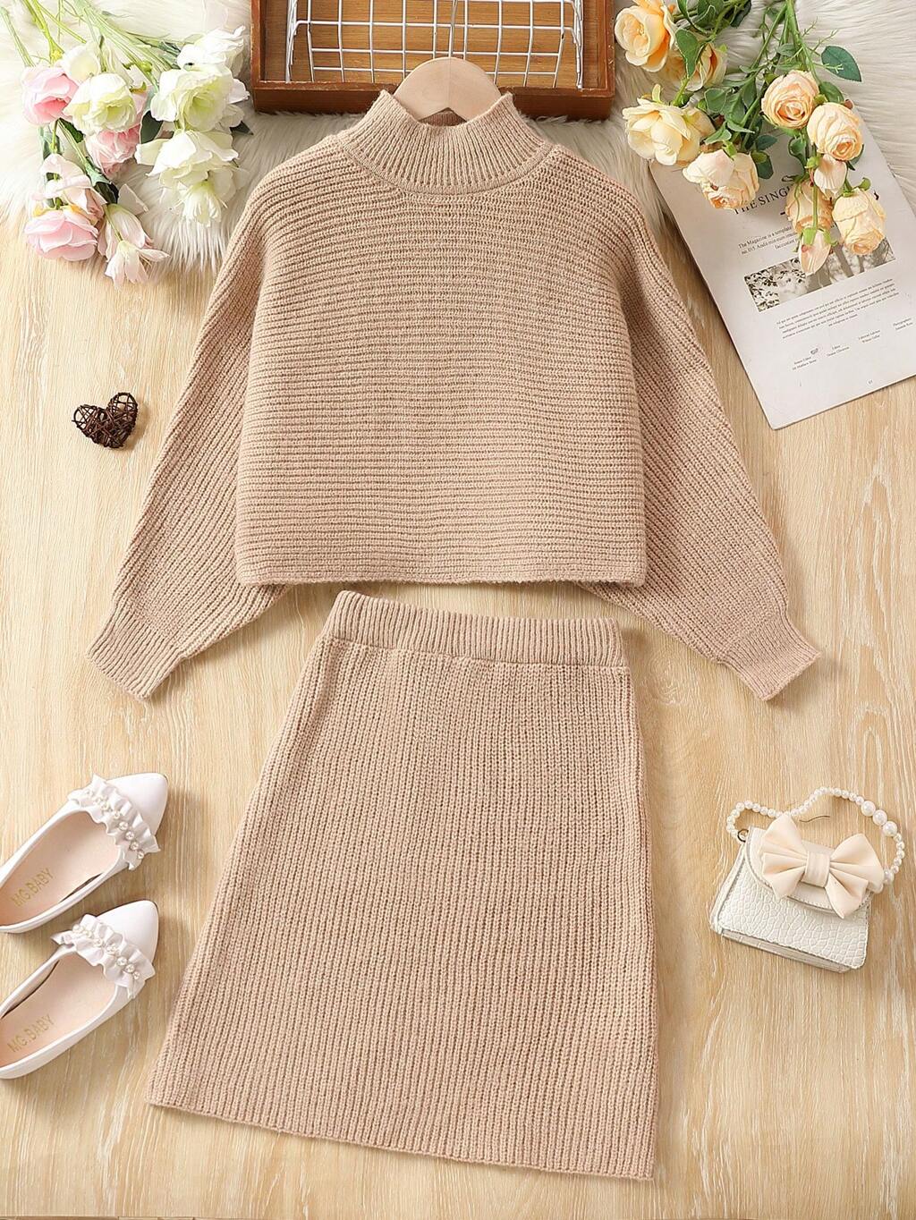 Tween Girl Mock Neck Solid Sweater & Knit Skirt