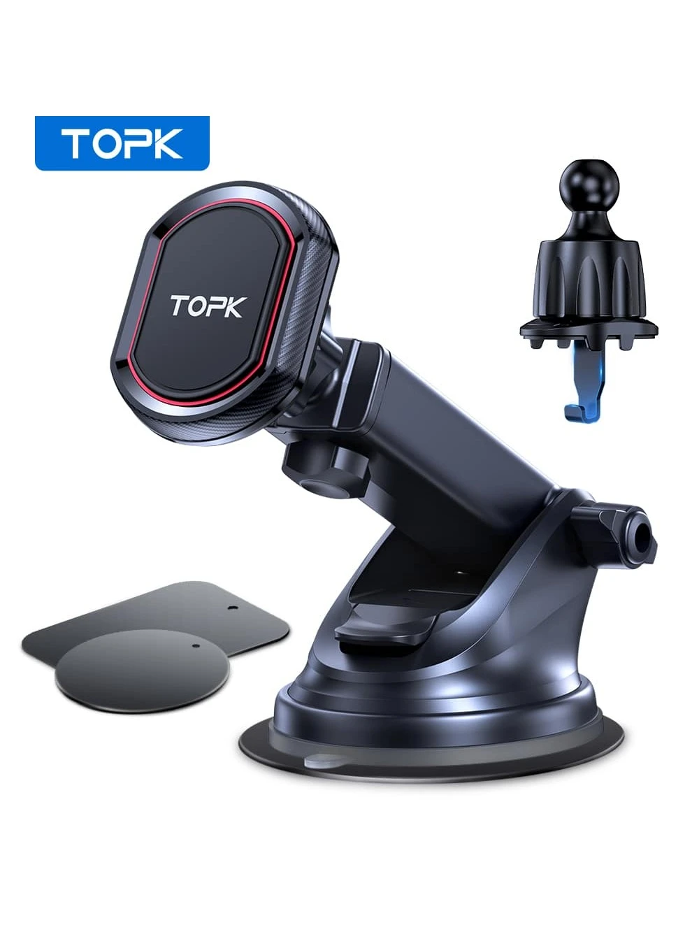 TOPK Magnetic Phone Car Mount,TOPK Dashboard Industrial-Strength Suction Cup Car Phone Mount Holder With 6 Strong Magnets Compatible With All Phones