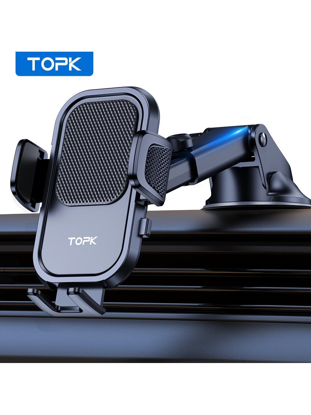 TOPK Car Phone Holder Mount For Dashboard, Upgraded Handsfree Cell Phone Stand Holder For Car Dashboard, Compatible With Most Cell Phones