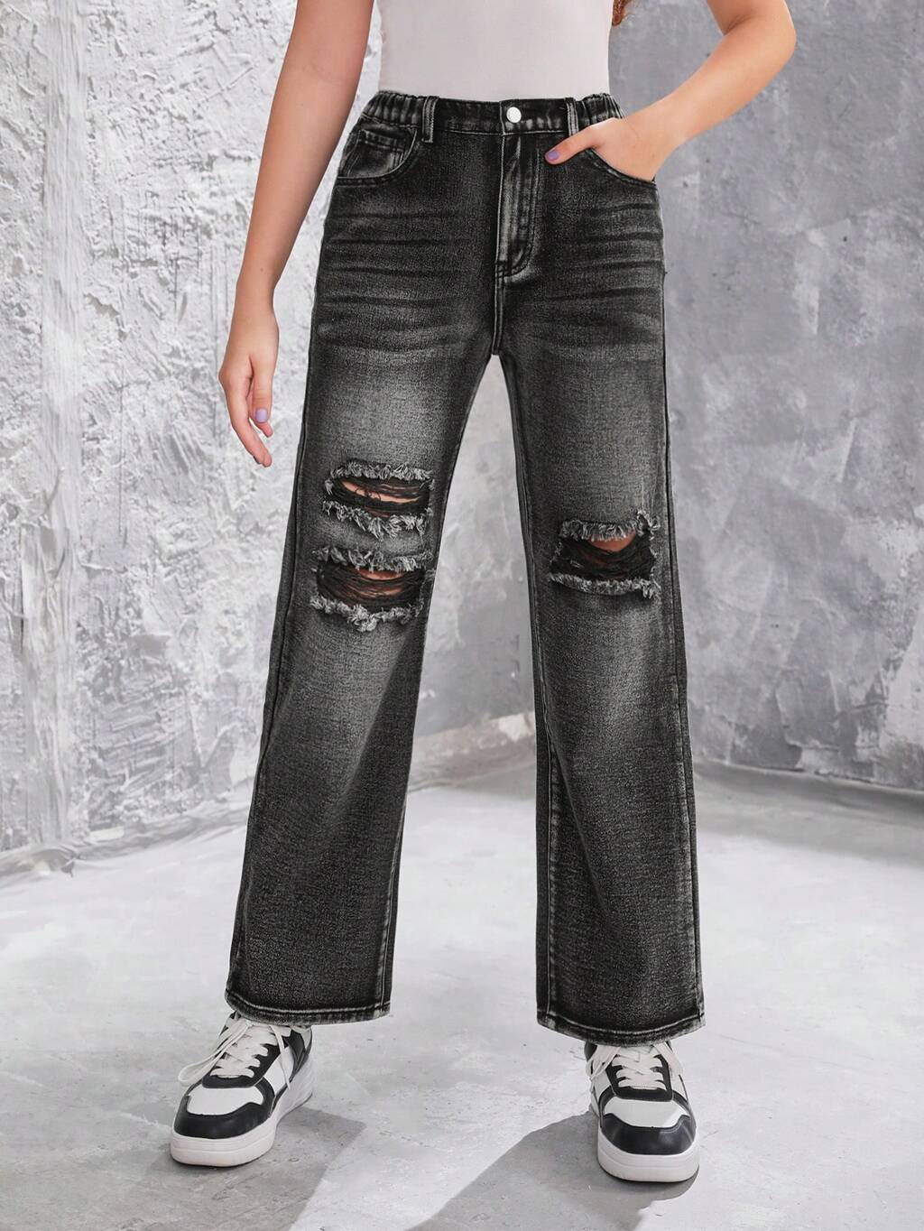 Teenagers' Distressed Straight Leg Jeans