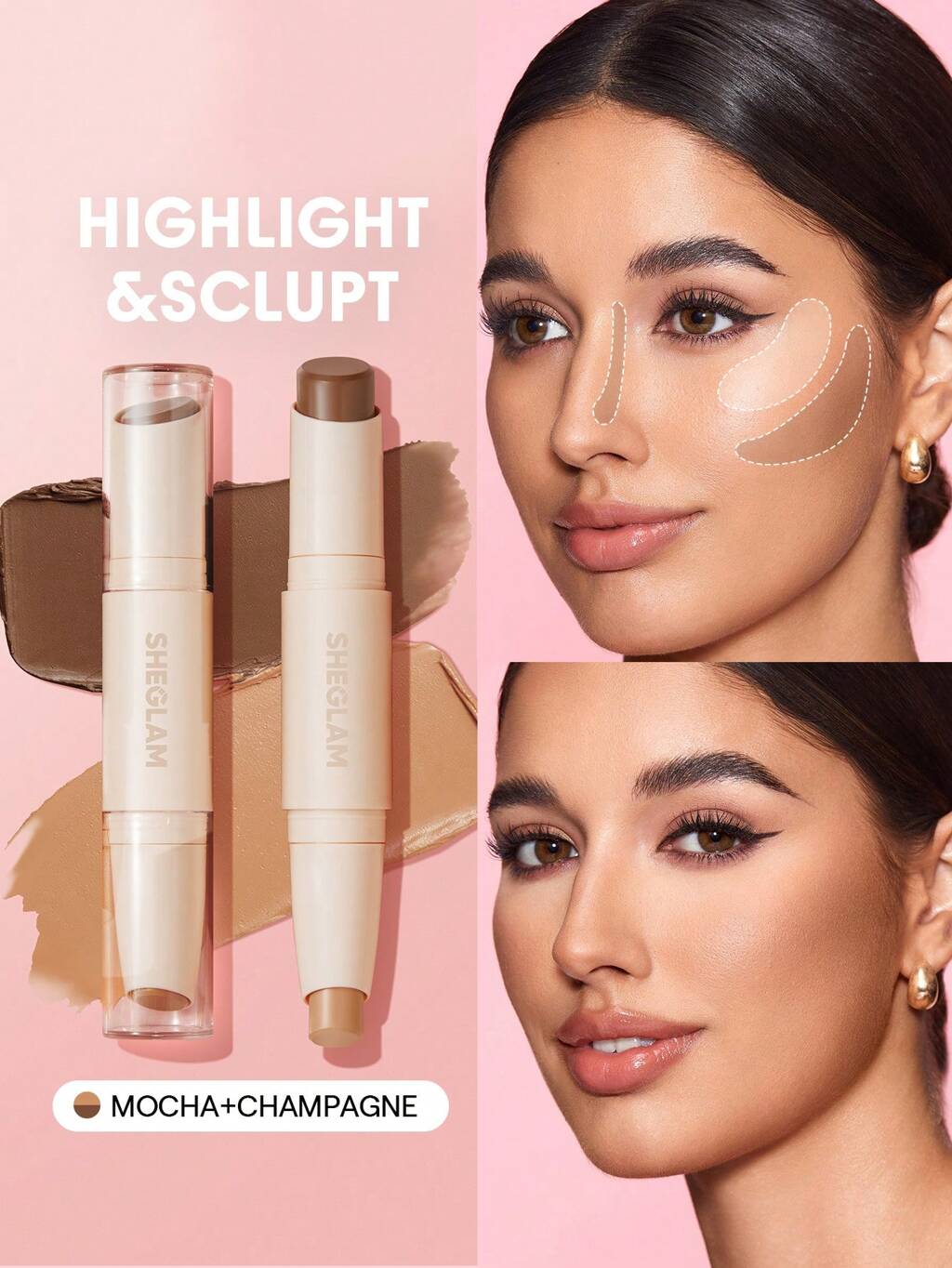 Color & Sculpt Stick-Mocha & Champagne 2 In 1 Contour Dual Head Highly Pigmented Non-Fading Dual-Use Highlighter Contouring Brightening Pro Contour Contour & Bronzer Brand Beauty Makeup Face Paint Cosmetic For Women Girls Perfect For Spring Summer Ideal For Y2K Fancy Fashion Suitable For Birthday Mother'S Day Gift Rave Party Ready Best Color