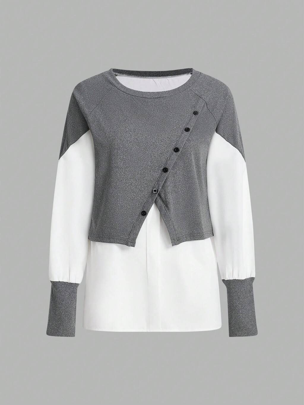 Women's Knitted Sweater & Woven 2 In 1 Shirt Combination With Patchwork Design