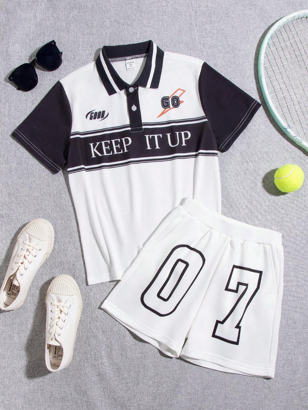 Tween Girls' Color Block Letter Print Top With Digital Print Shorts