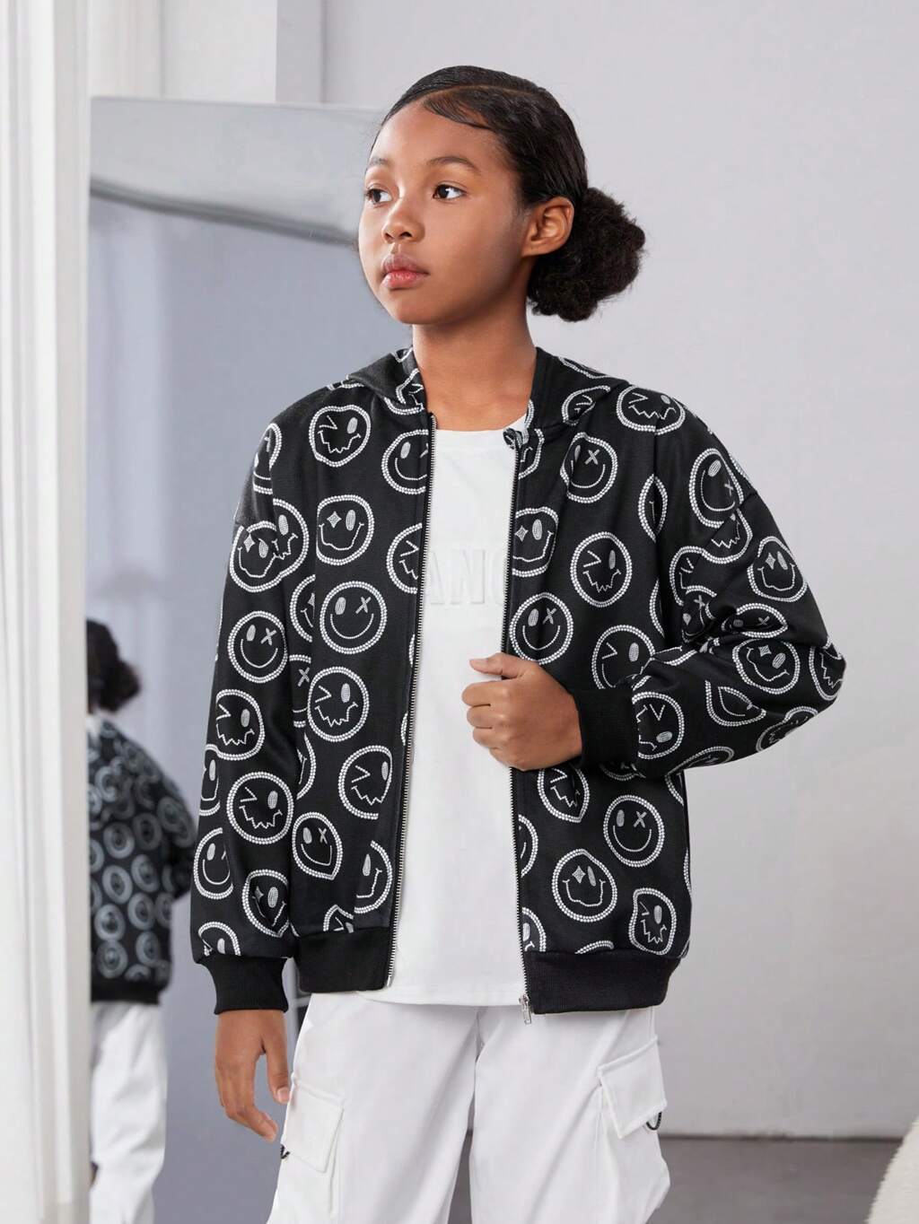 Tween Girl Allover Print Zip Up Sweatshirt