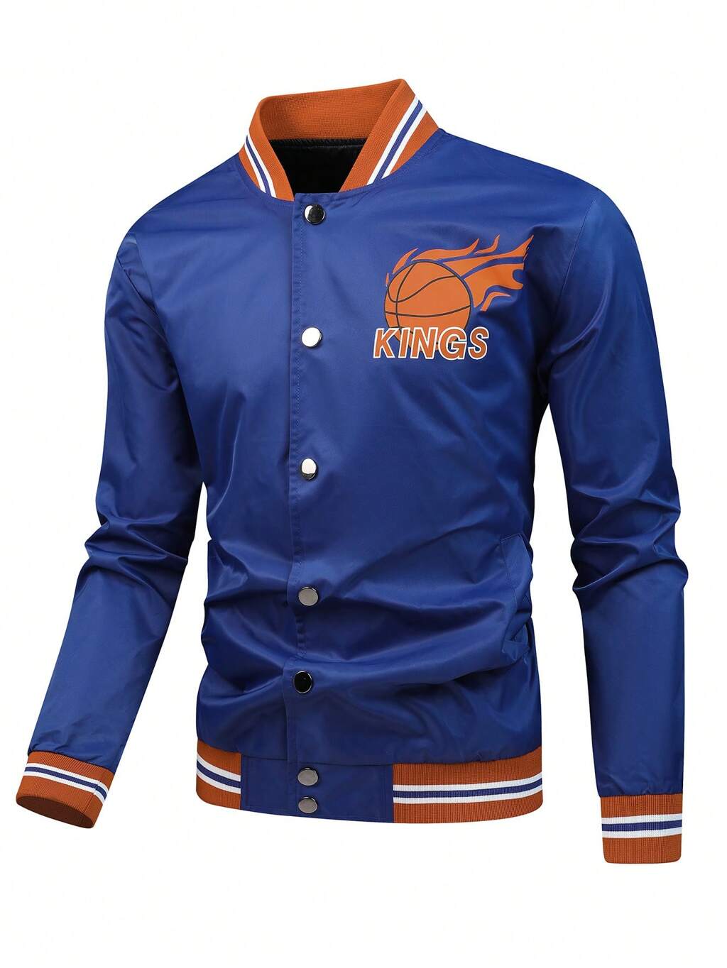 Loose Fit Men's Button Front Pilot Jacket With Letter And Basketball Print