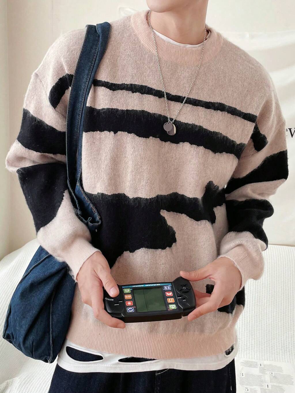 Loose Fit Men's Printed Drop Shoulder Sweater