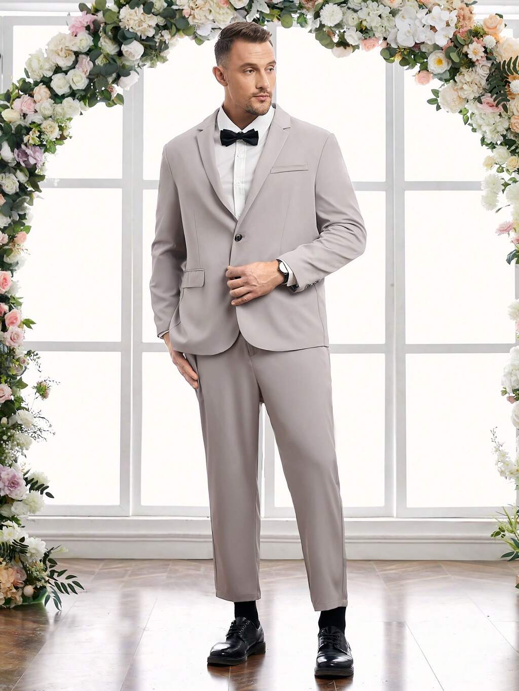 Men'S Notched Collar Single Breasted Suit Jacket And Suit Pants Set