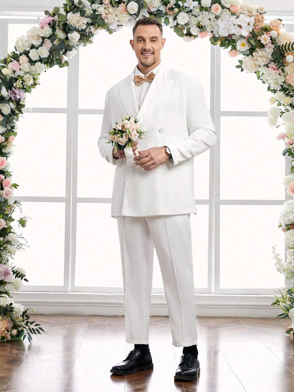 1pc Plus Size Men's Peak Lapel Long Sleeve Suit Jacket & 1pc Suit Pants Set, Woven Casual Two Pieces Set