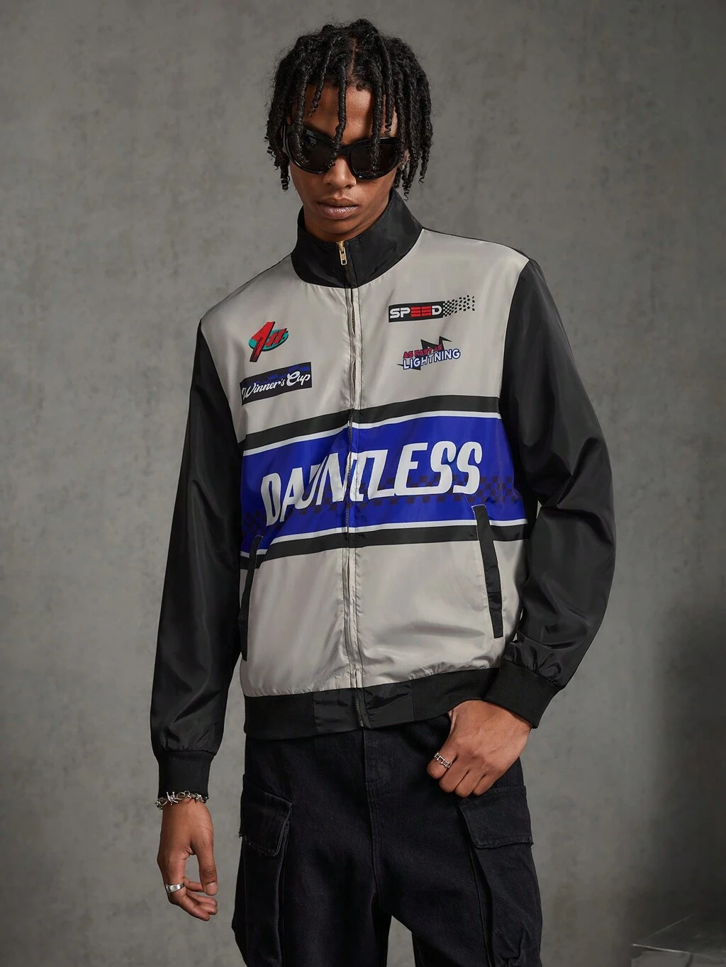 Men's Woven Leisure Color-Blocked Zipper Front Jacket With Letter Print, For Fall Winter