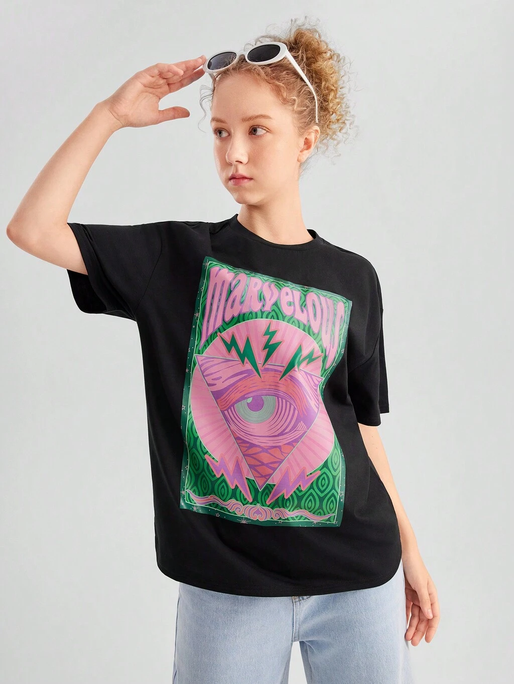 Teen Girl Street Style Printed Round Neck Loose Fit Casual Short Sleeve T-Shirt
