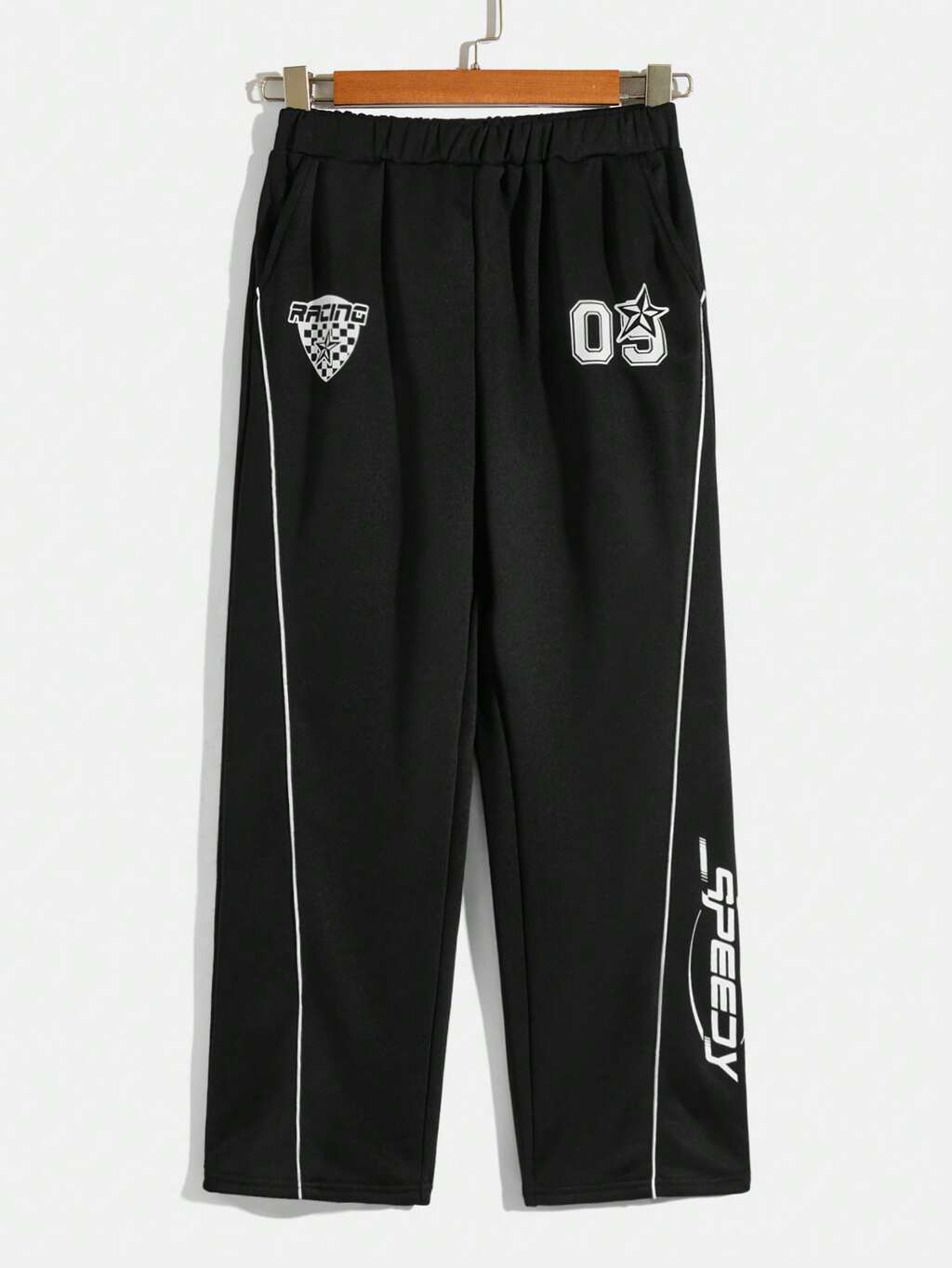 Boys' Letter Print Straight Wide Leg Knit Pants For Casual Wear