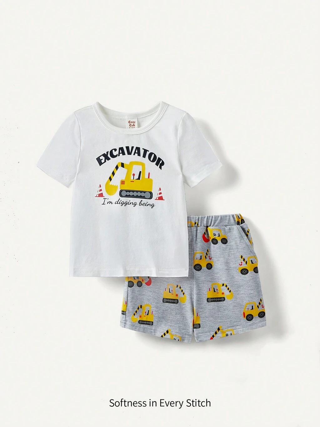 Baby Boy Snug Fit Cartoon Printed Short Sleeve T-Shirt And Shorts Set With Round Neck