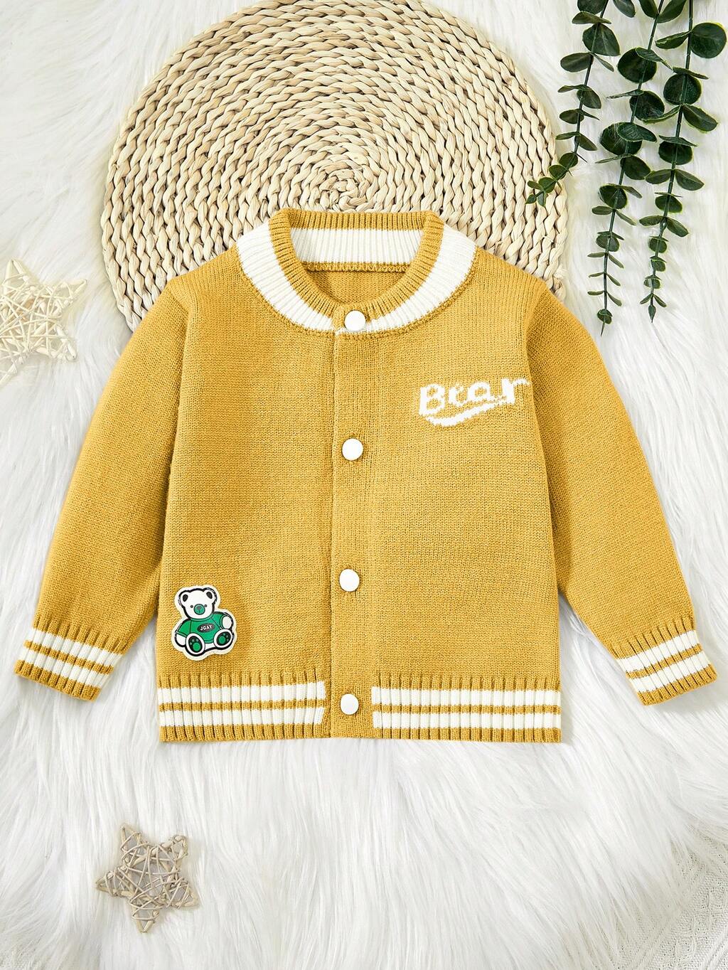 Baby Boys' Color-contrast Teddy & Letter Pattern Cardigan