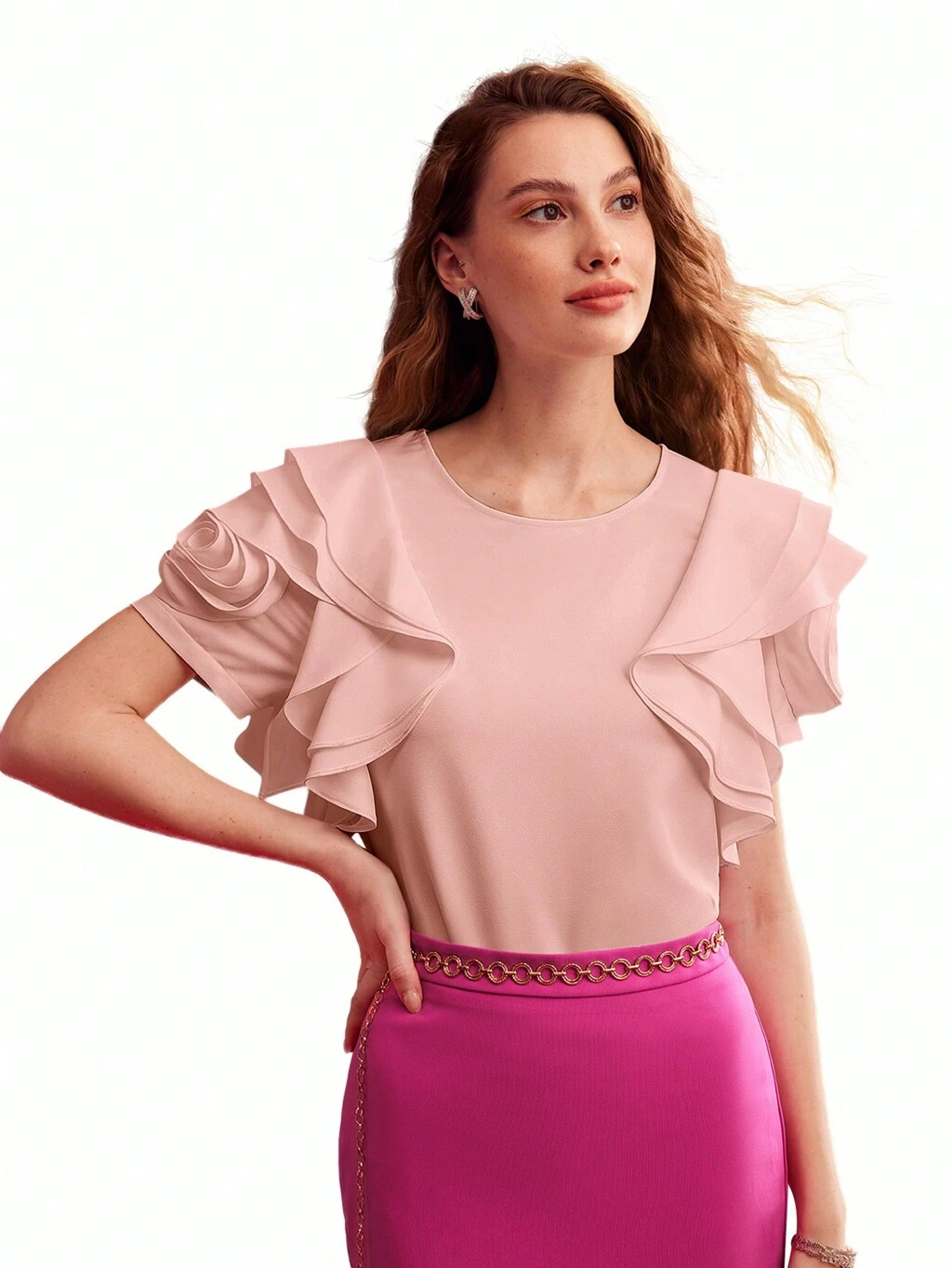 STEREO FLOWER LAYERED RUFFLE TRIM BLOUSE