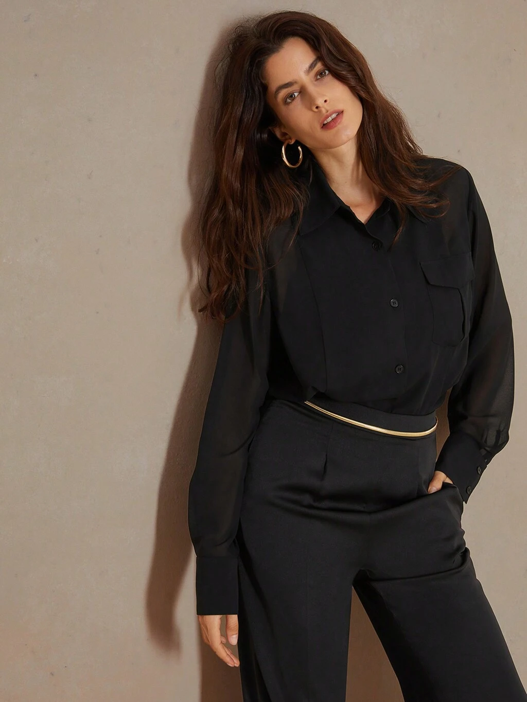 Women Fashionable Neck Hanging Frill Edge Shirt