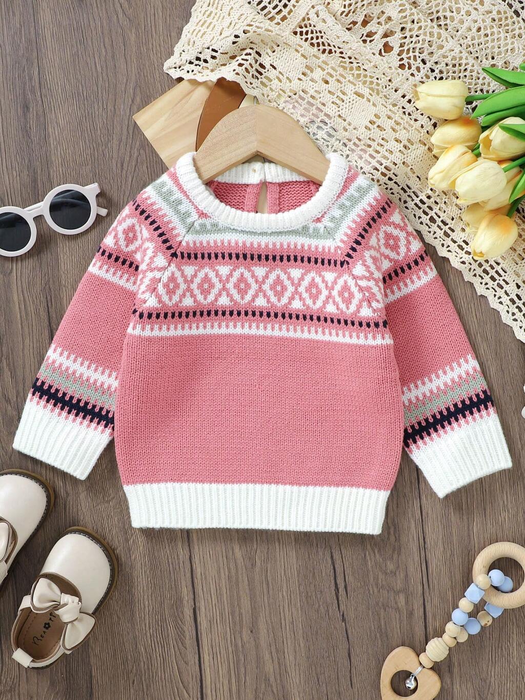 Baby Girl Geo Pattern Raglan Sleeve Sweater