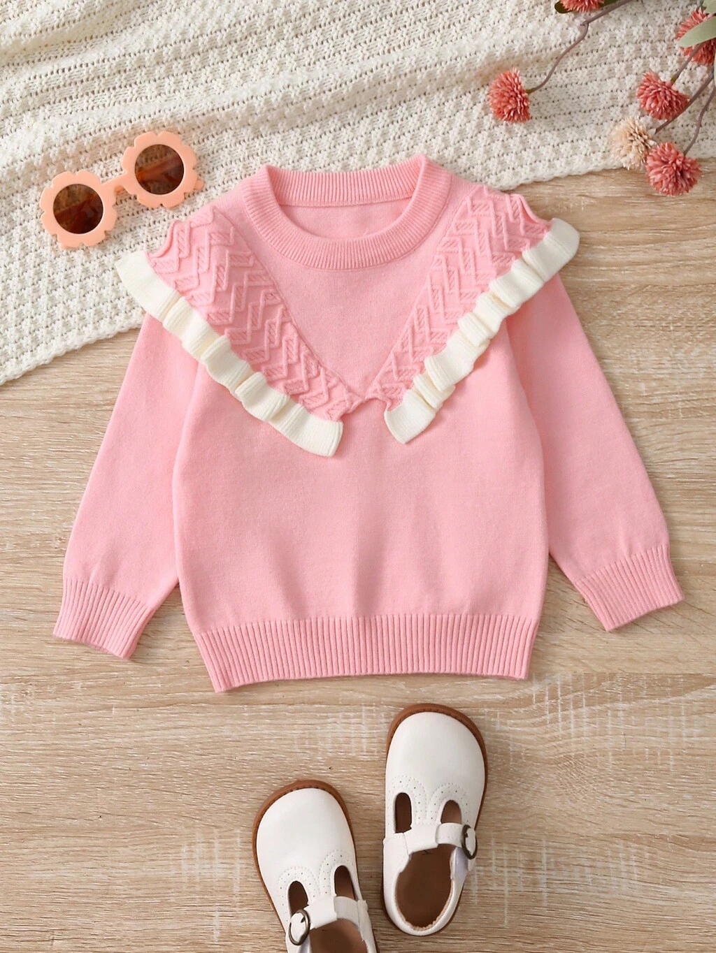 Baby Girl Contrast Ruffle Panel Sweater