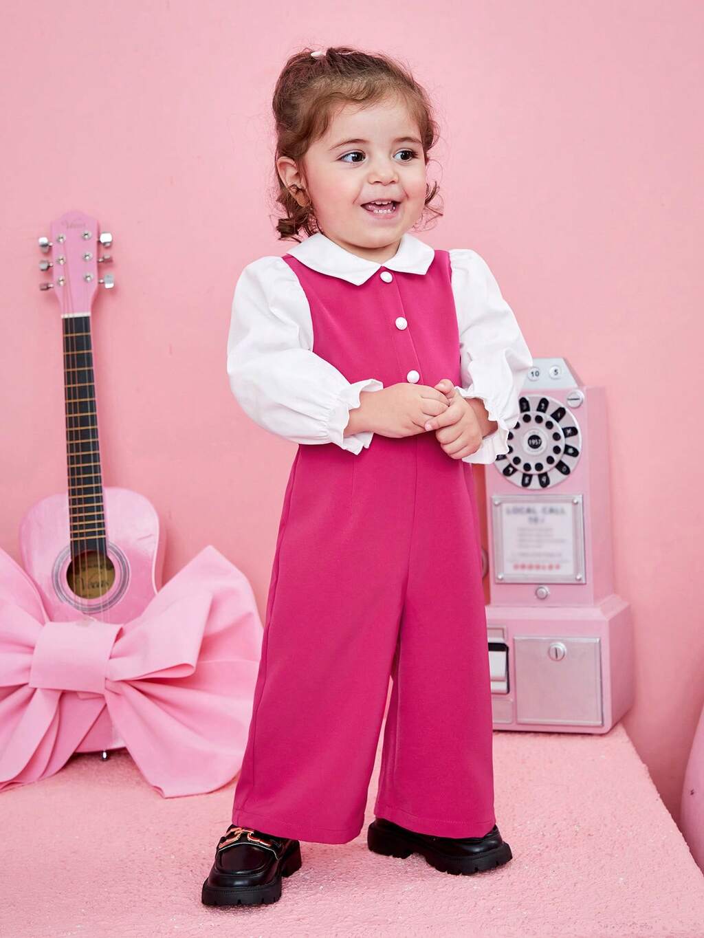 Baby Girl 2 In 1 Turn-Down Collar Long Sleeve Loose Jumpsuit