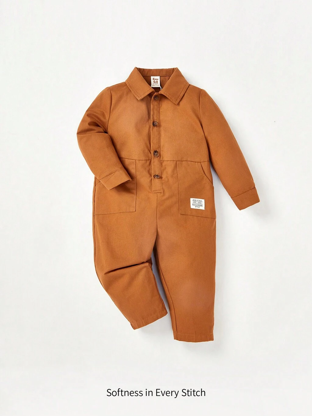 Baby Girl Letter Patched Detail Dual Pocket Shirt Jumpsuit