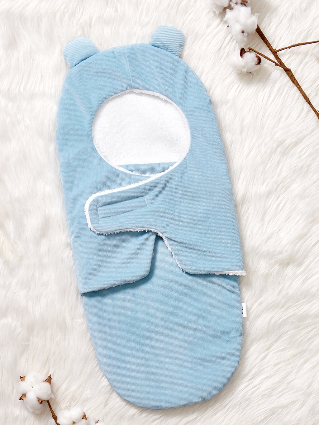 1pc Baby Cartoon Ear Decor Plush Swaddling Blanket
