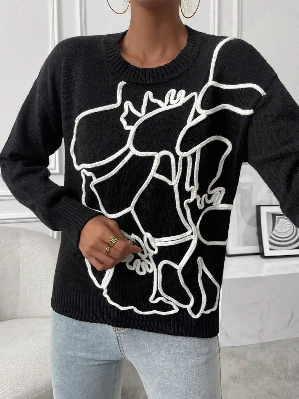 Graphic Pattern Drop Shoulder Knit Pullover Fall Winter Sweater