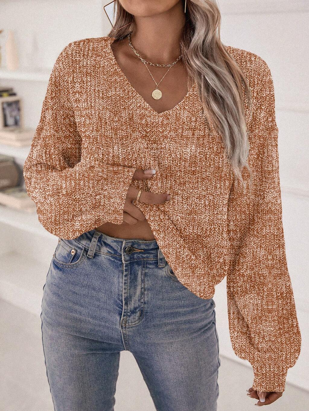 Space Dye Drop Shoulder Knit Pullover Fall Winter Sweater