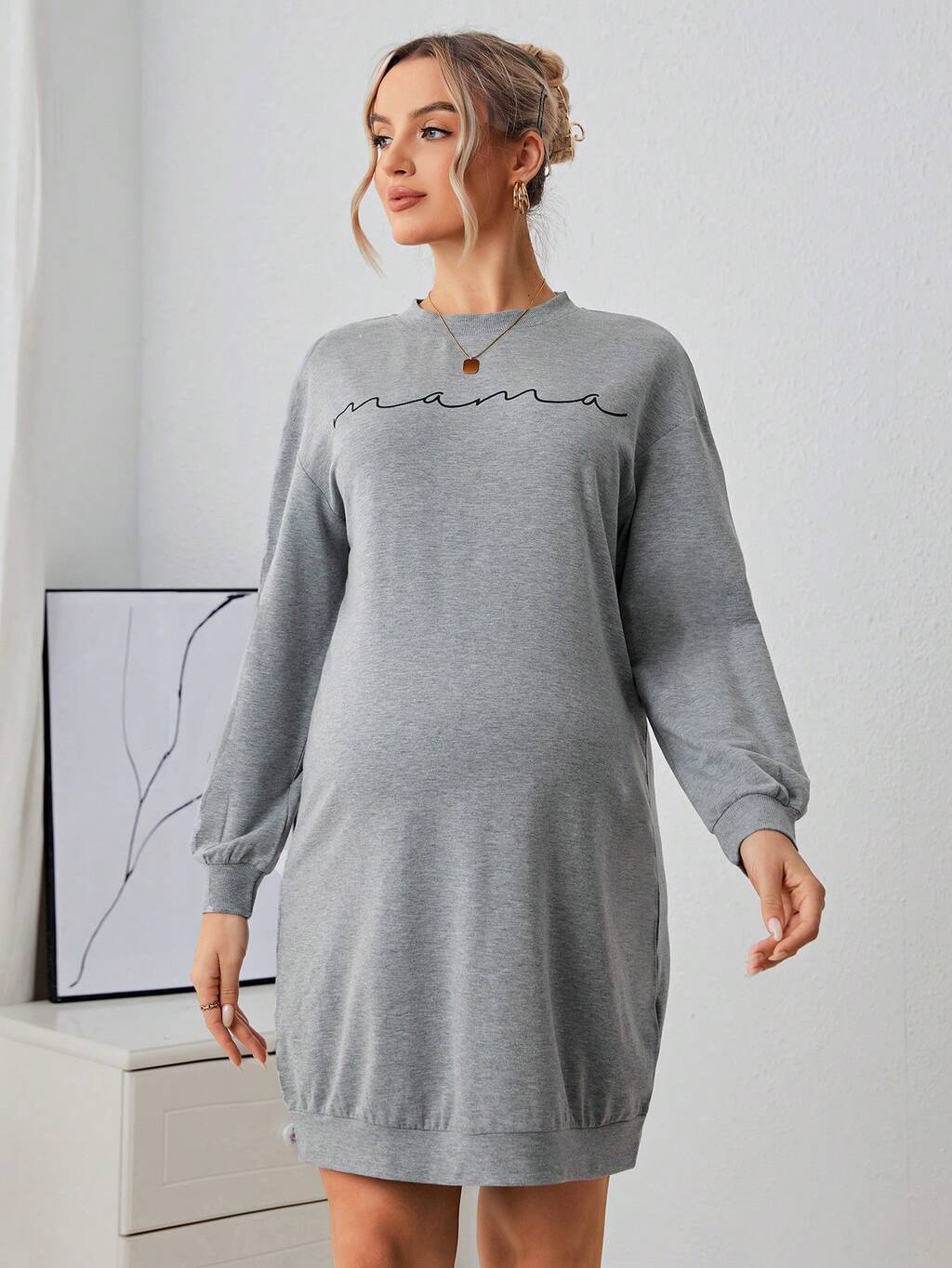 Maternity Letter Graphic Drop Shoulder Sweatshirt Dress, For Winter