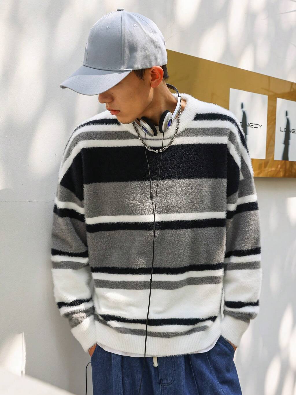 Men Striped Pattern Drop Shoulder Sweater