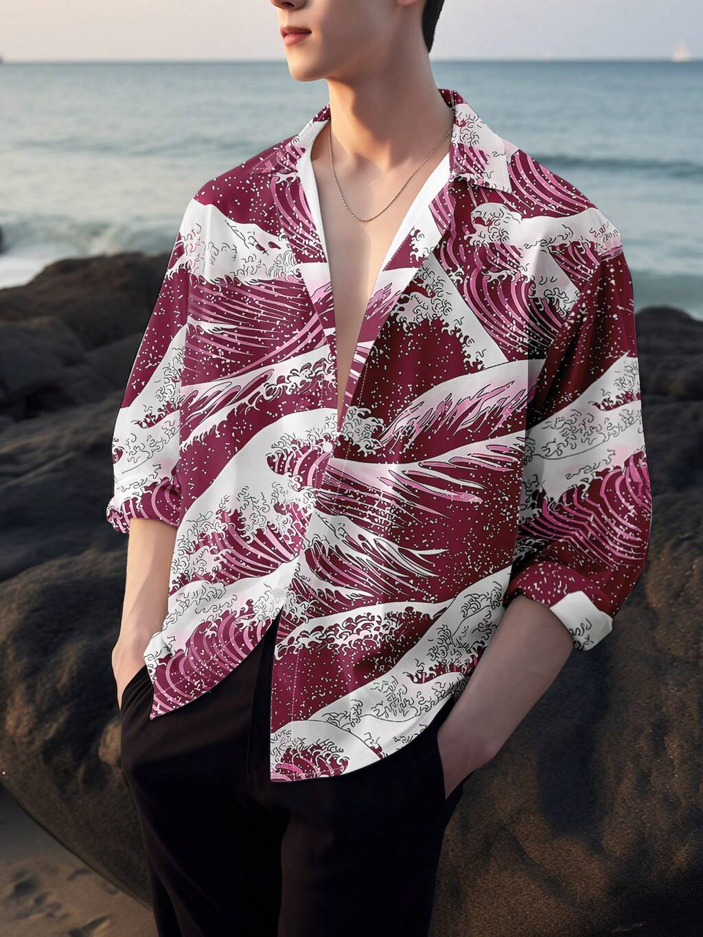 Men's Plus Size Wave Pattern Printed Shirt