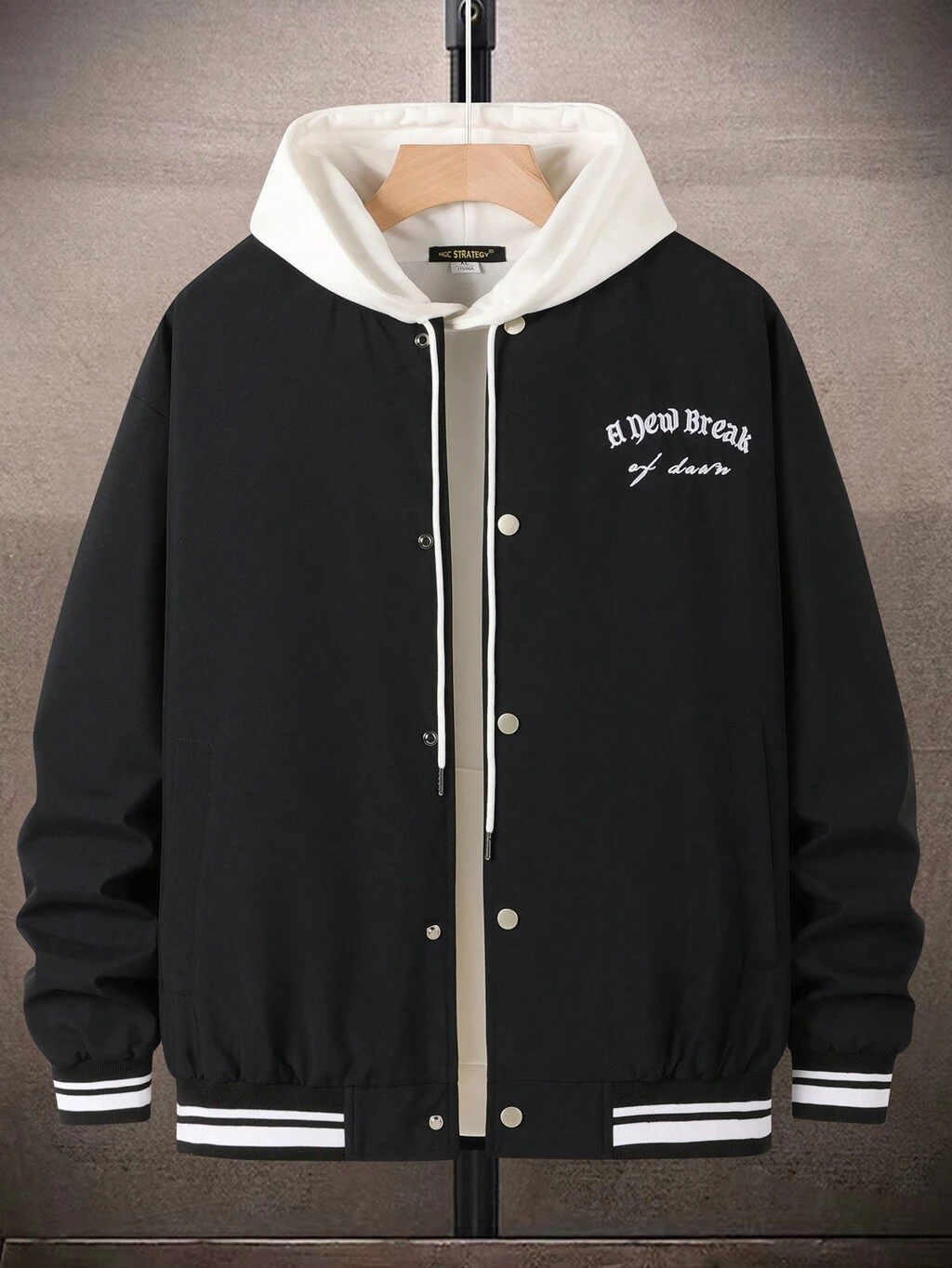 Loose Fit Men's Embroidered Slogan Detail Jacket With Striped Trim