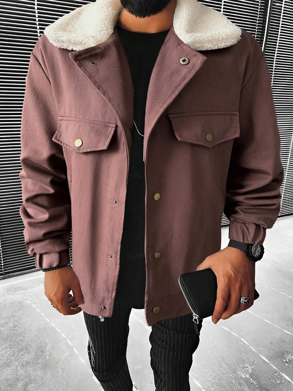 Loose Fit Men's Jacket With Borg Collar And Flap Detail
