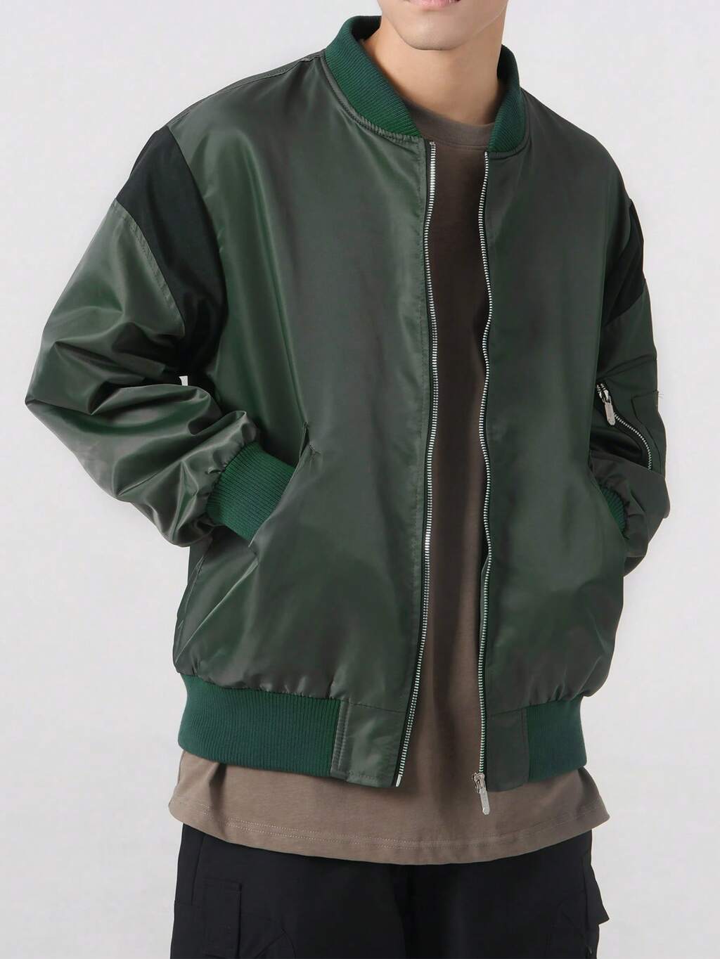 Loose Fit Men's Colorblock Zip Up Bomber Jacket