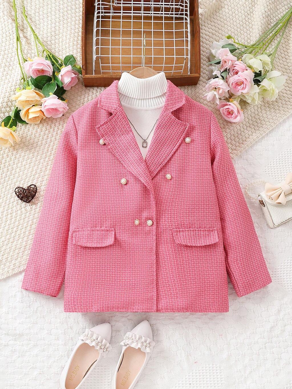 Girls' Loose Fit College Style Lapel Jacket With Fringe Trim,In Fall/Winter