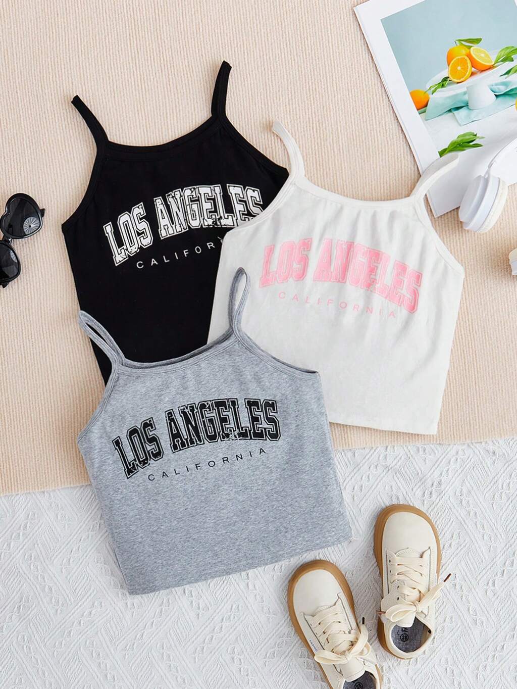3pcs/set Tween Girls' Letter Printed Sleeveless Top