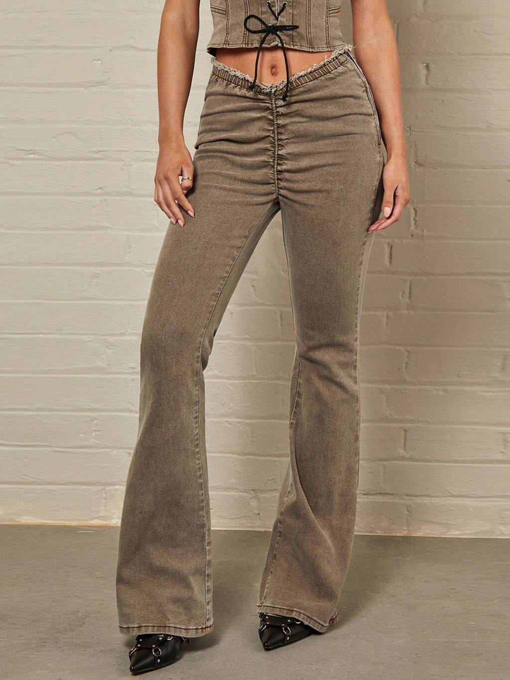 Y2k Style Pleated Low Waist Flared Jeans