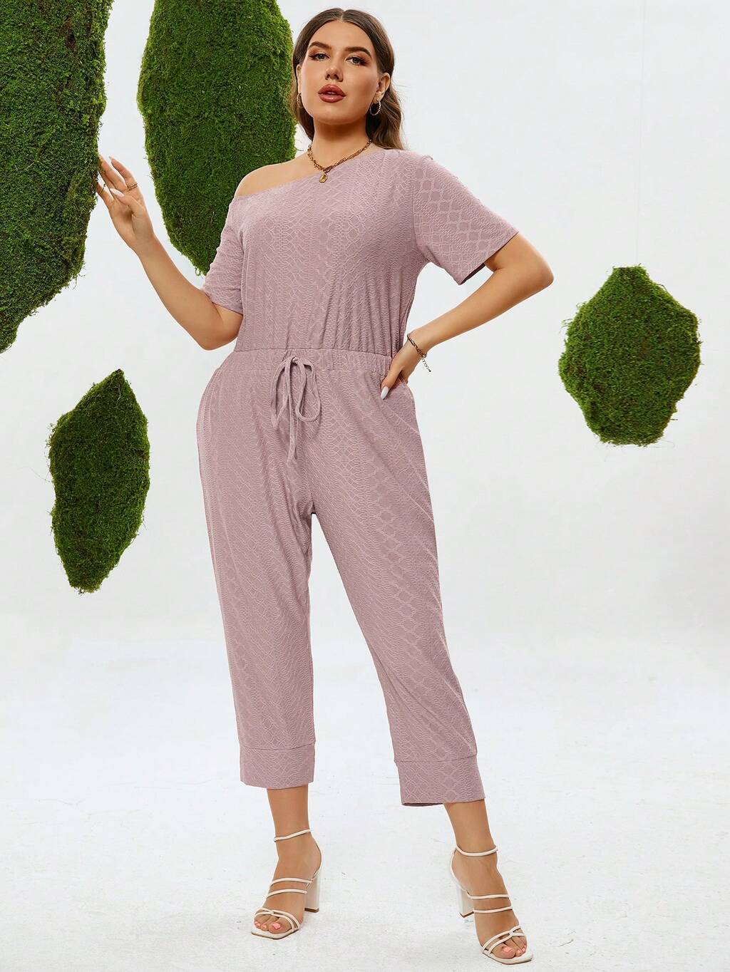 Plus Size Solid Color Asymmetrical Neck Jumpsuit