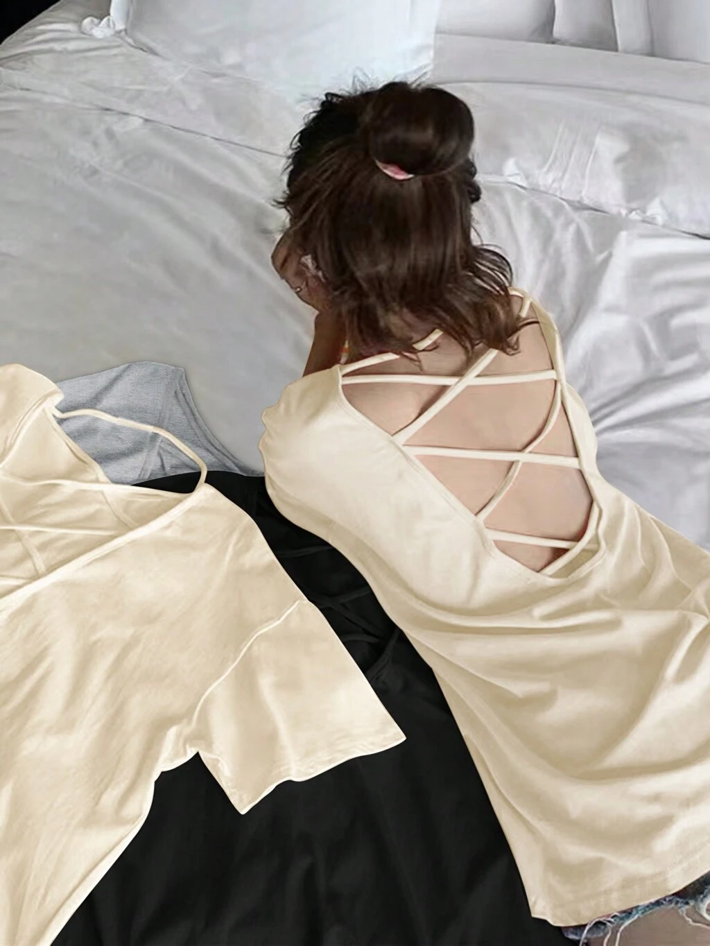 Plus Size 3pcs/Set Cross Back Loose Fit Casual T-Shirts