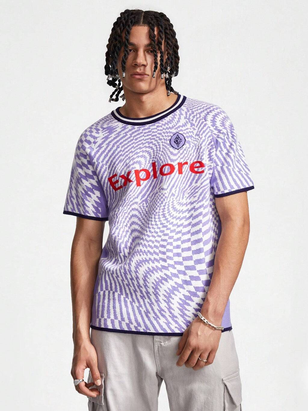 Men Summer Casual Knitted Short Sleeve Tee With Letter Embellished Raglan Sleeve Detail