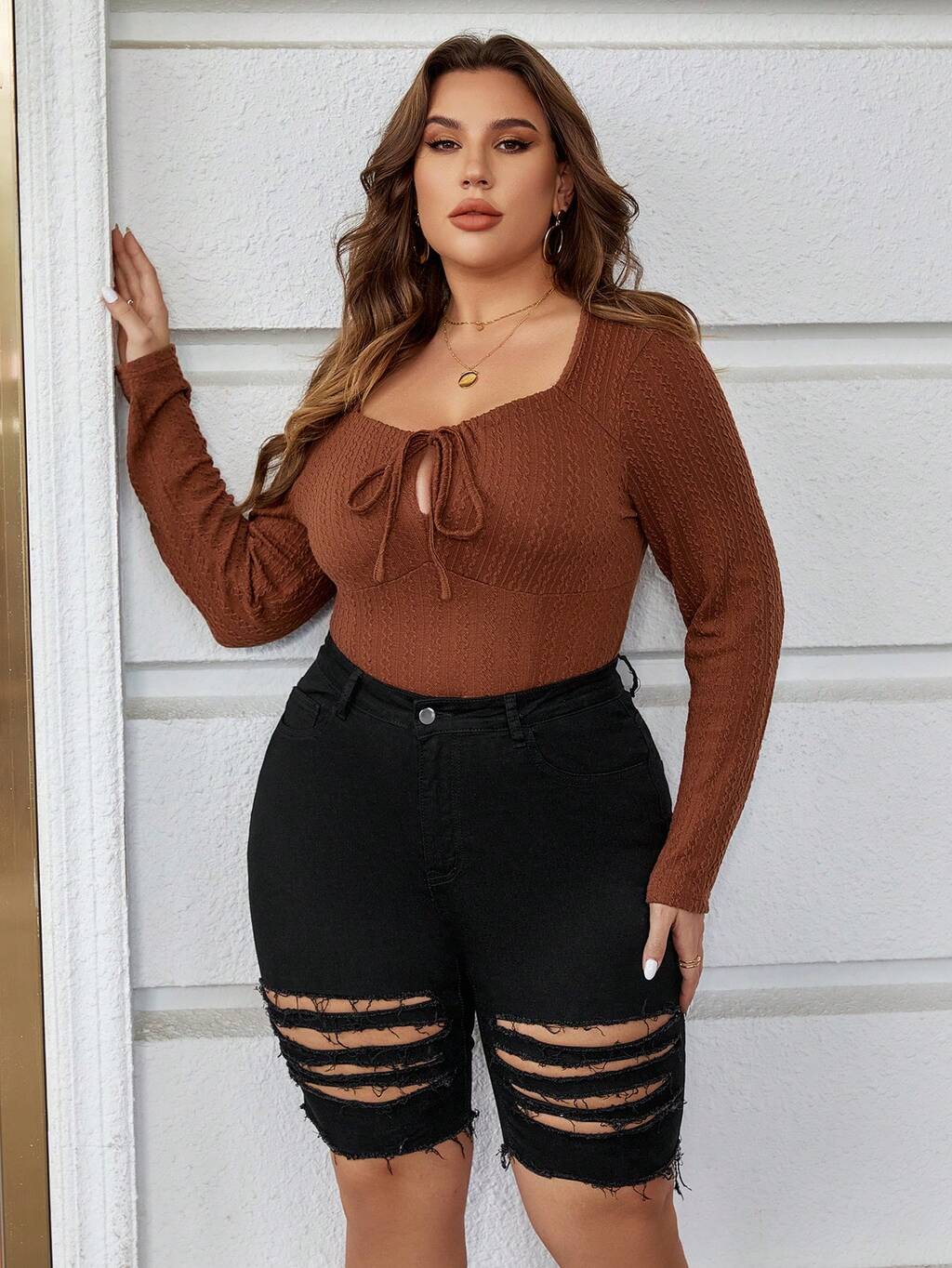 Plus Ripped Raw Hem Denim Shorts