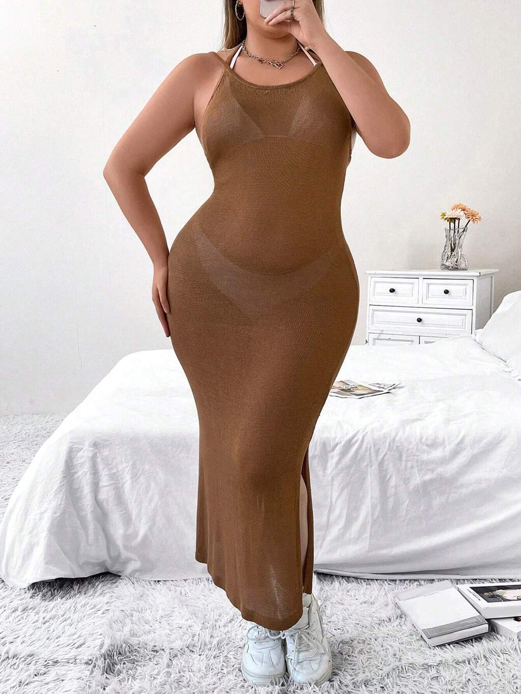 Plus Split Thigh Backless Sweater Dress Without Lingerie Set