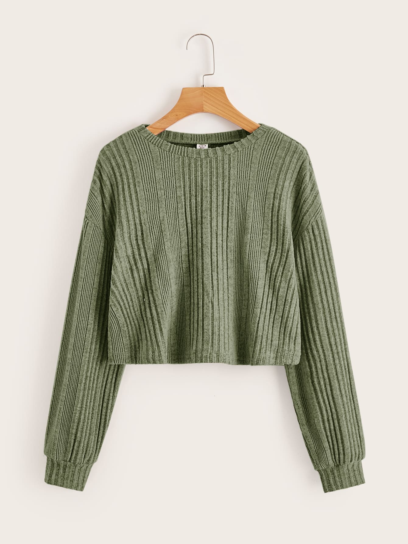Leisure Long-Sleeved Teen Girl's Drop-Shoulder Knitted T-Shirt In Ribbed Texture