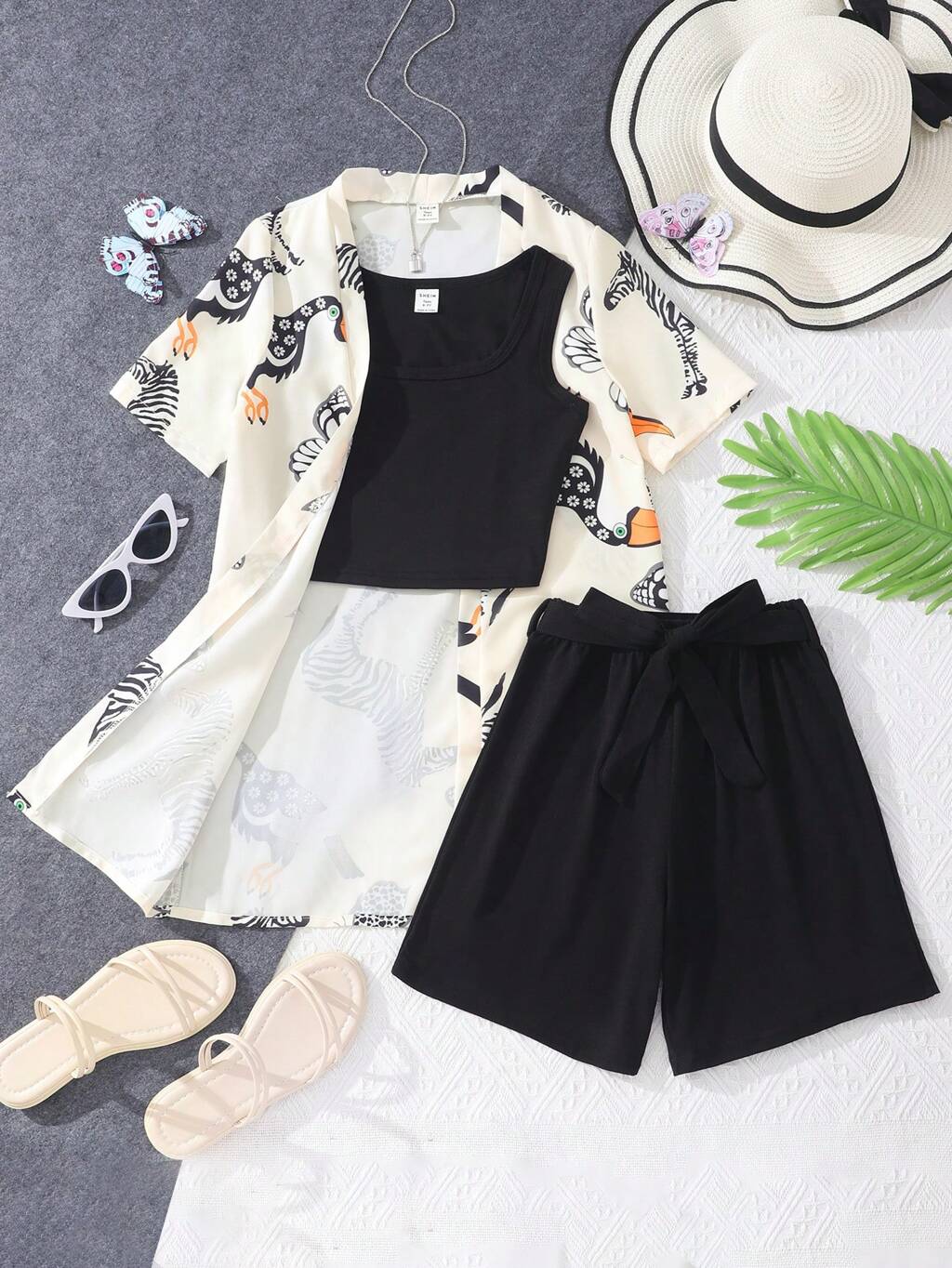Teen Girls Crop Tank Top & Shorts & Animal Print Blouse