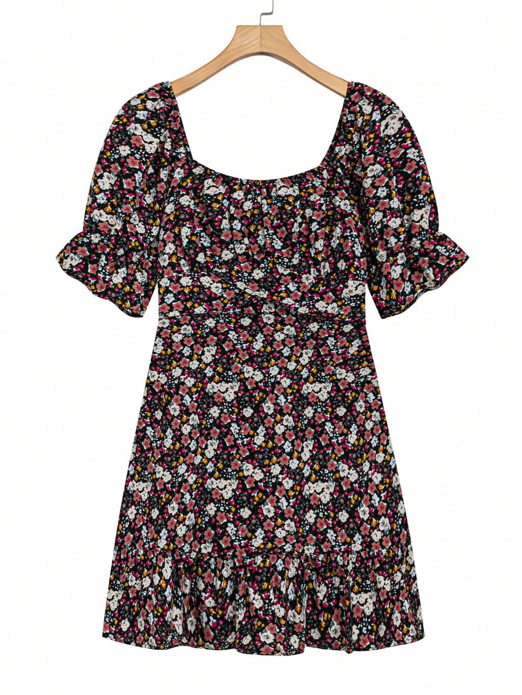 Plus Size Square Neckline Floral Print Dress With Ruffled Hem