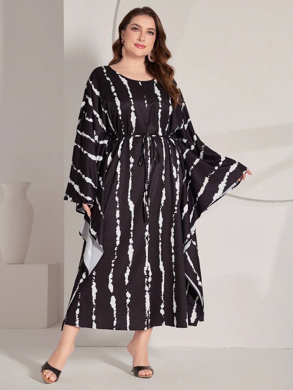 Plus Size Women's Tie Dye Flare Sleeve Arabian Kaftan Dress