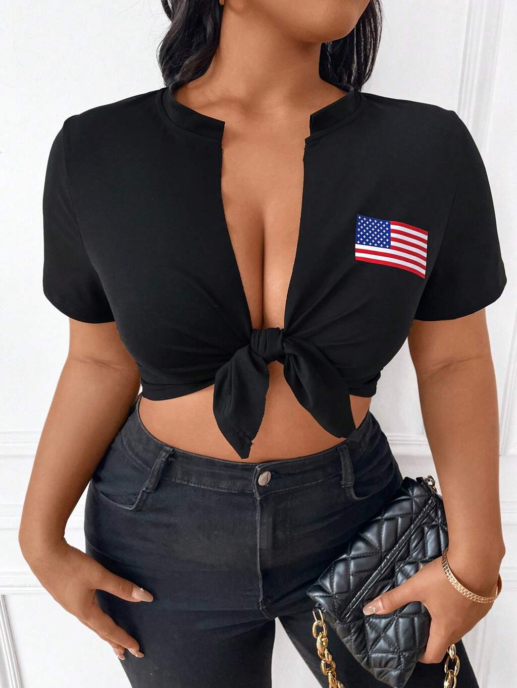 Vacation Leisure Plus Size Black Crop Top With Tie Straps And Wide-Leg Pants For Women