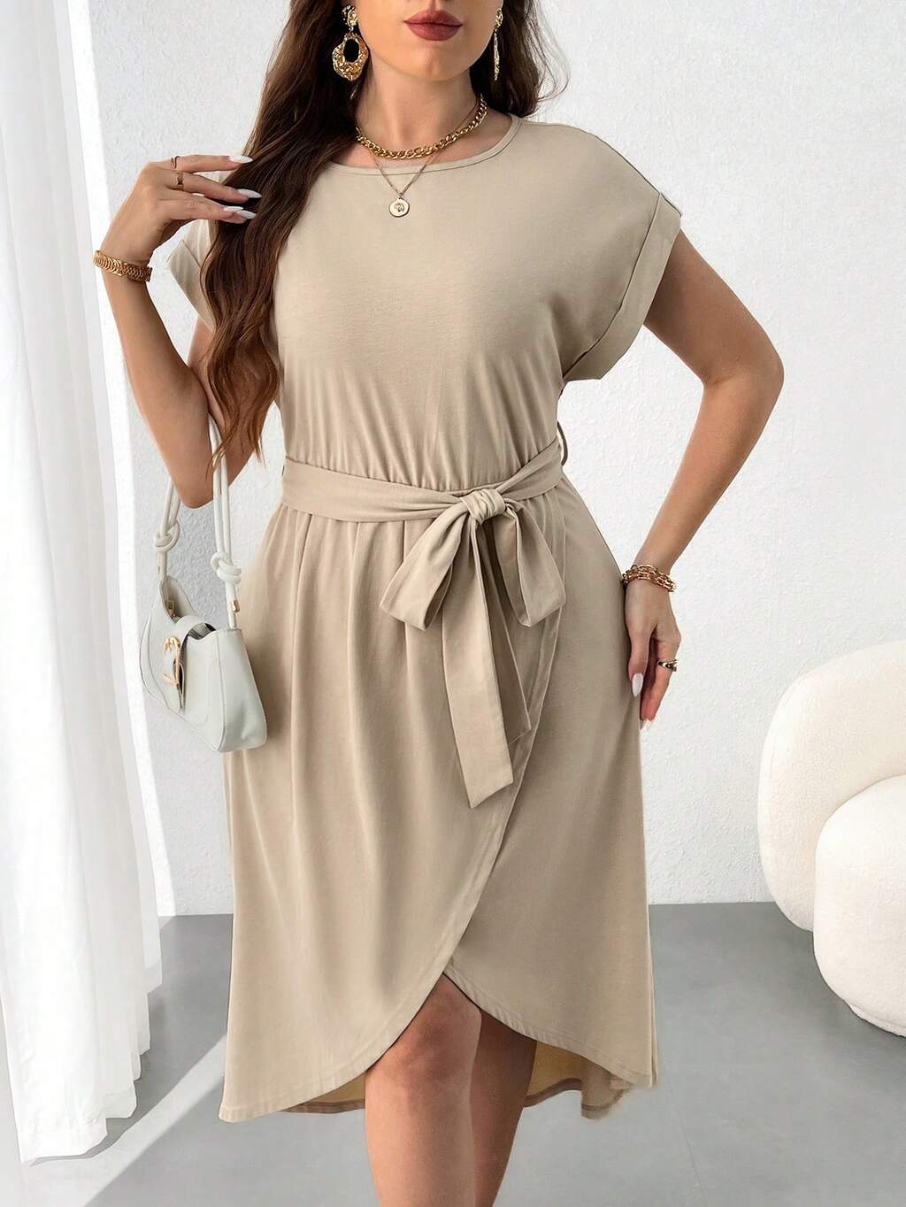 Plus Size Women's Batwing Sleeve Dress With Asymmetrical Hem