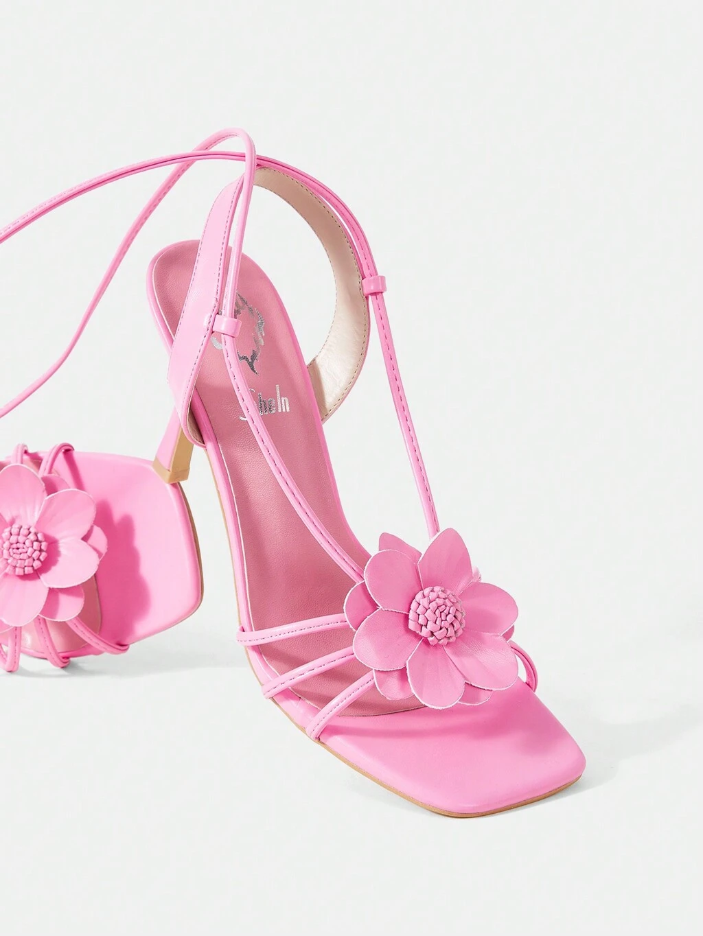Pink Pu Women'S High Heel Strappy Square Toe Sandals
